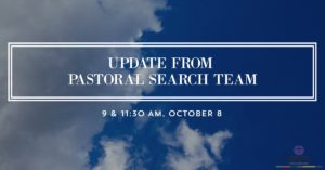 What’s new with our pastor search? At both 9 am & 11:30 am next Sunday, Oct. 8, the adult education...