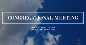 Next Sunday, June 3 there will be a congregational meeting following the morning worship services. This will be an informational...