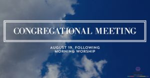 On Sunday, August 19, immediately following the worship services there will be a brief congregational meeting for the purpose of...