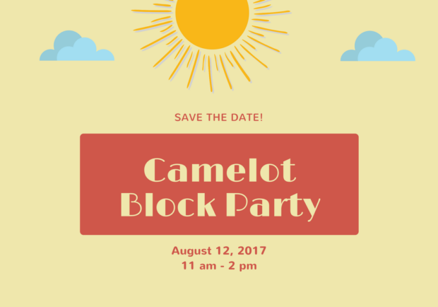 Save the Date: August 12 is our annual Camelot Block party at Camelot Park. Join us from 11 am to 2 pm for a time of games, face paint, food, and fellowship with our neighbors.