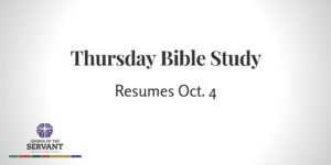 The Thursday Bible Study will resume on Thursday, October 4, from 9:30-11 am. Together we will study the book of...