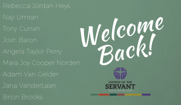 This Sunday we welcome the returning resident pastors who are leading this morning’s worship: Rebecca Jordan Heys, Naji Umran, Tony Curran, Josh Baron, Angela Taylor Perry, Mara Joy Cooper Norden, Adam Van Gelder, Jana VanderLaan, and Brion Brooks. Adam Van Gelder will also be leading the BES service at 11 am.