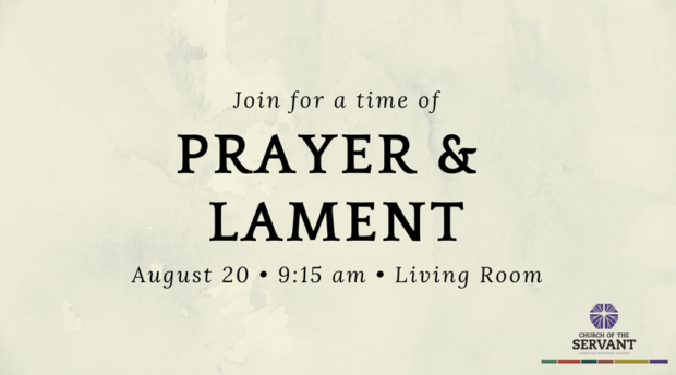 Please join us this Sunday at 9:15 am in the Living Room for a time of prayer and lament for recent national and local displays of white supremacy and violence. This will be a time to join together in lifting up our pain and sorrow to God, to pray for healing for those who have been hurt and continue to be hurt, and to pray that peace reigns in Charlottesville, in Grand Rapids, in our nation, and in the world.